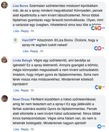 Annyira biztosak vagyunk abban, hogy a HairOff™ egyetlen törléssel segít eltávolítani a nem kívánt szőrszálakat fájdalmas gyantázás vagy unalmas borotválkozás nélkül, ezért 100%-os feltétel nélküli pénz-visszafizetési garanciát kínálunk 12 hónapig (365 napig). Ha nem lát jelentős változást, vagy fájdalmat és irritációt érez a termék használata után, VAGY egyszerűen elégedetlen a vásárlásával, teljes árát visszatérítjük. Nincsenek kérdések. És még a terméket sem kell visszaküldenie. Így teljesen kockázatmentes a vásárlás